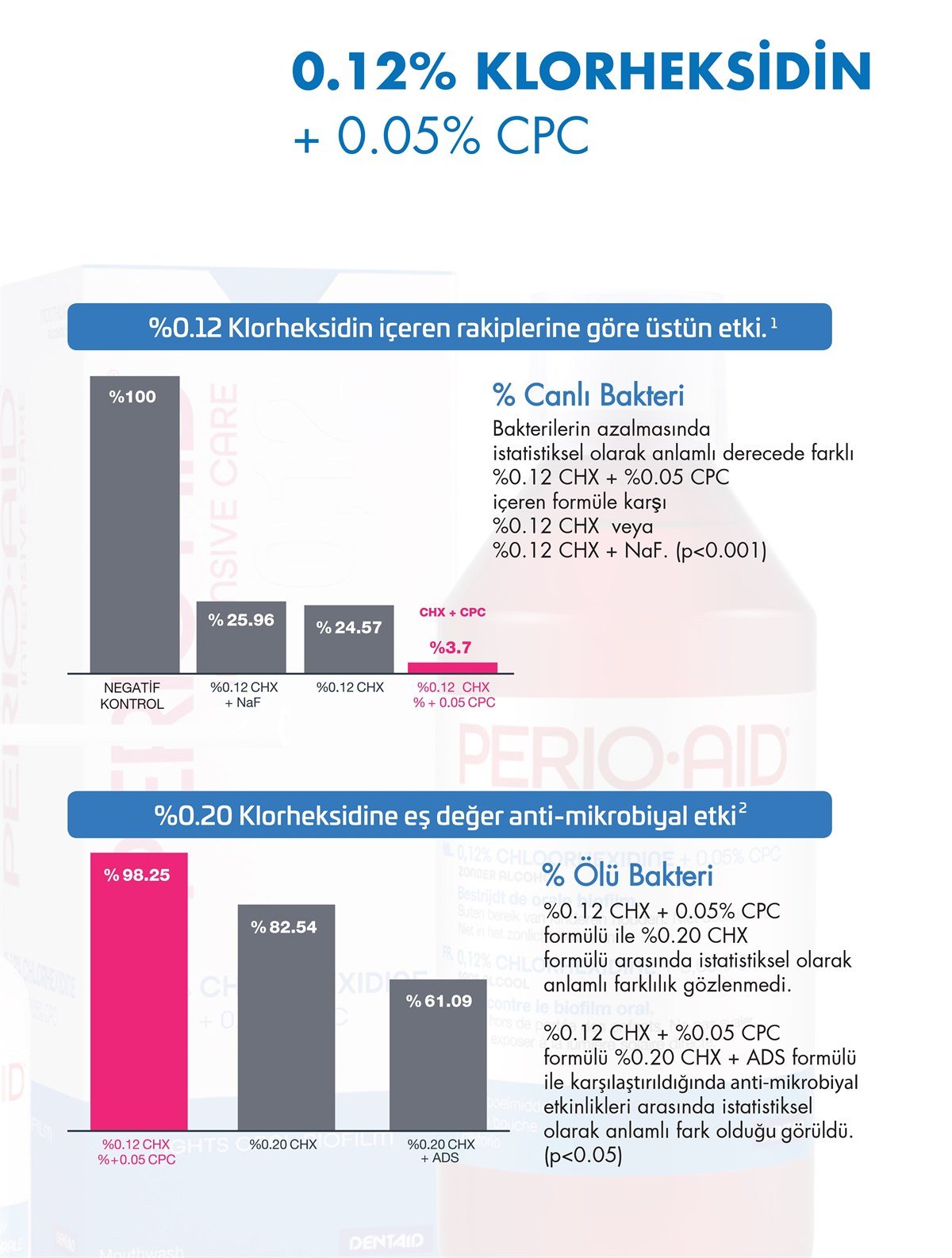 %0,12 Klorheksidin Diglukonat ve %0,05 Cetylpyridinium chloride ( setilpridinyum klorid) içeren üstün formülü ile diş eti sağlığının sürdürülmesine yardımcı olur.