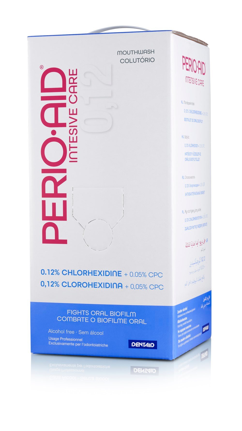 Dental işlemler öncesinde ağız içi antisepsi için kullanıma hazır musluklu 5 lt klinik boy ağız çalkalama suyu. %0,12 CHX ve %0,05 CPC içeriği ile bakteri ve virüs kontaminasyonunu önlemeye yardımcı olur.